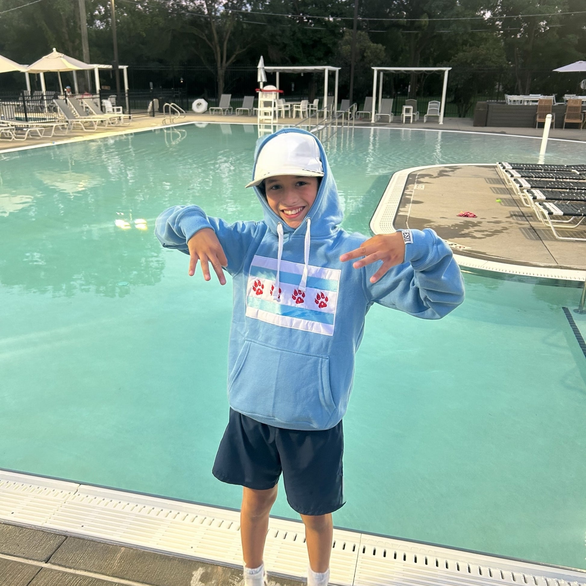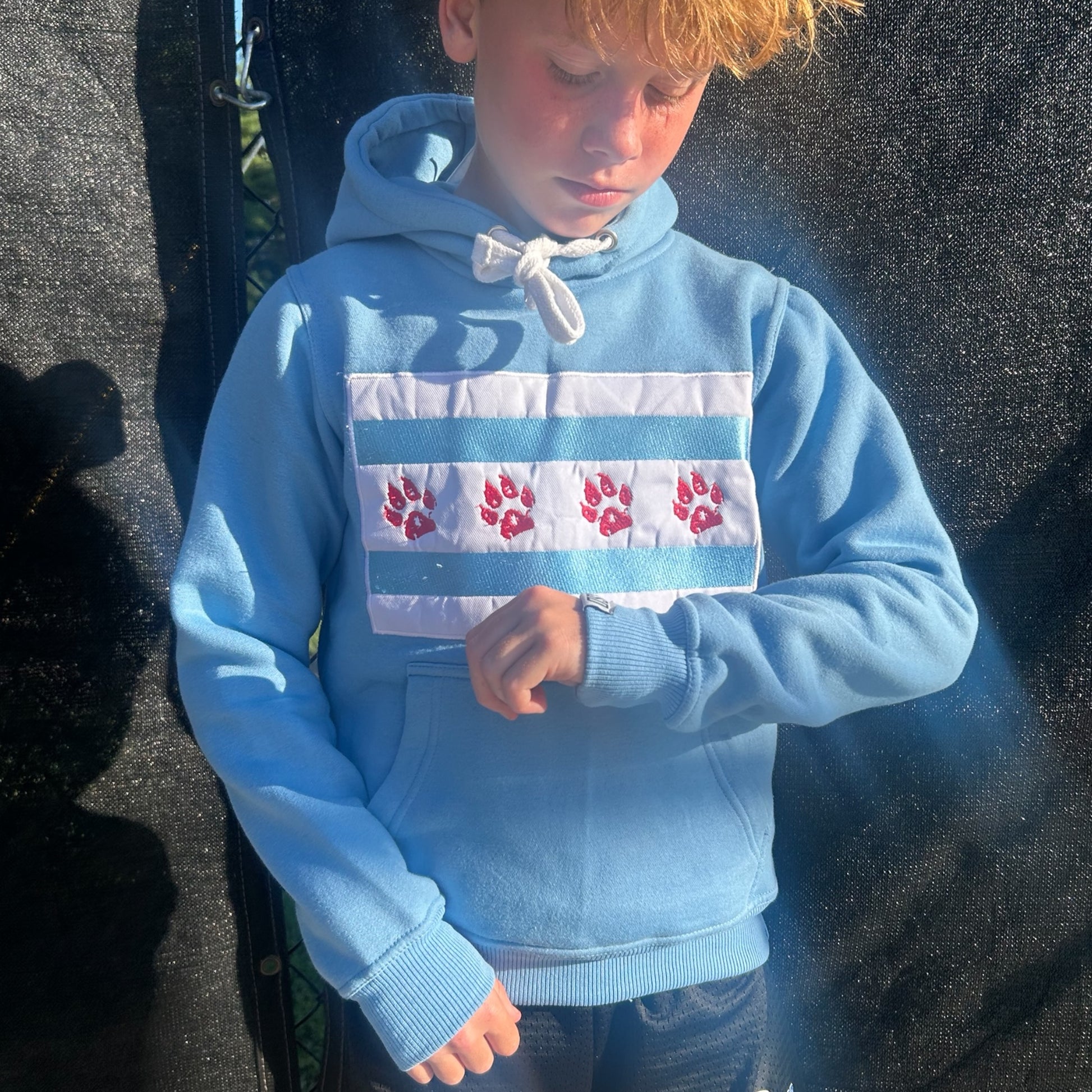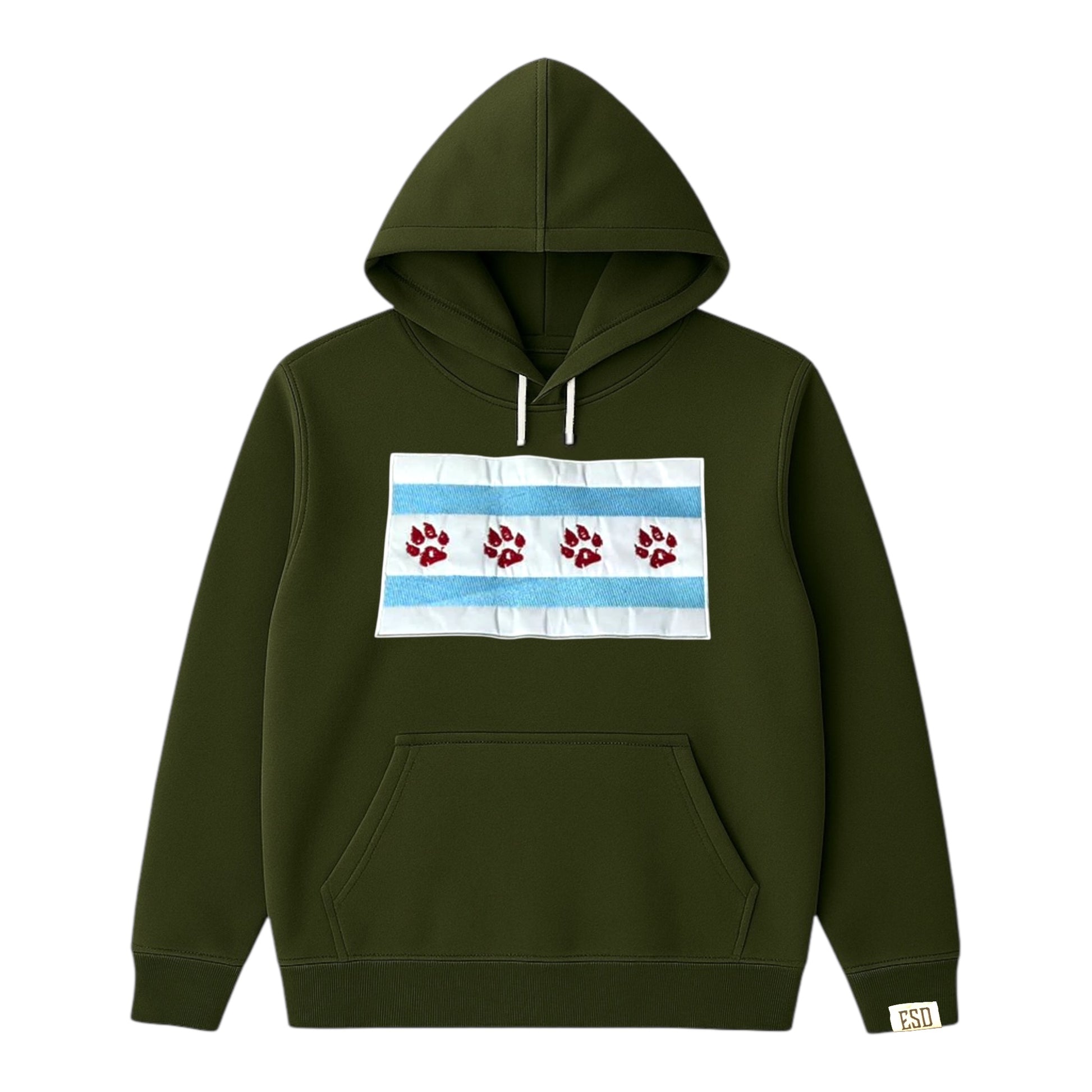 This hoodie is for the true Chicago dog lovers — the ones who give their all to their pup every single day. Inspired by the iconic Chicago flag, we swapped the stars for paw prints to celebrate the bond between you and your dog.